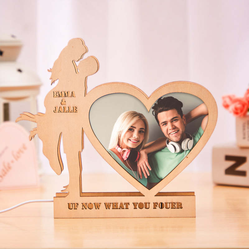 Cette lampe est faite de bois et d'acrylique, décorée du nom et de la date, ce qui signifie que les amoureux sont ensemble pour toujours. Étant une pièce de décoration intérieure inhabituelle et mignonne, cette lampe crée une atmosphère romantique et intime. Deux noms sur la lampe la rendent personnalisée, et un cadeau comme celui-ci montre une touche personnelle et est très apprécié. L'article est respectueux de l'environnement et absolument sans danger pour les enfants.