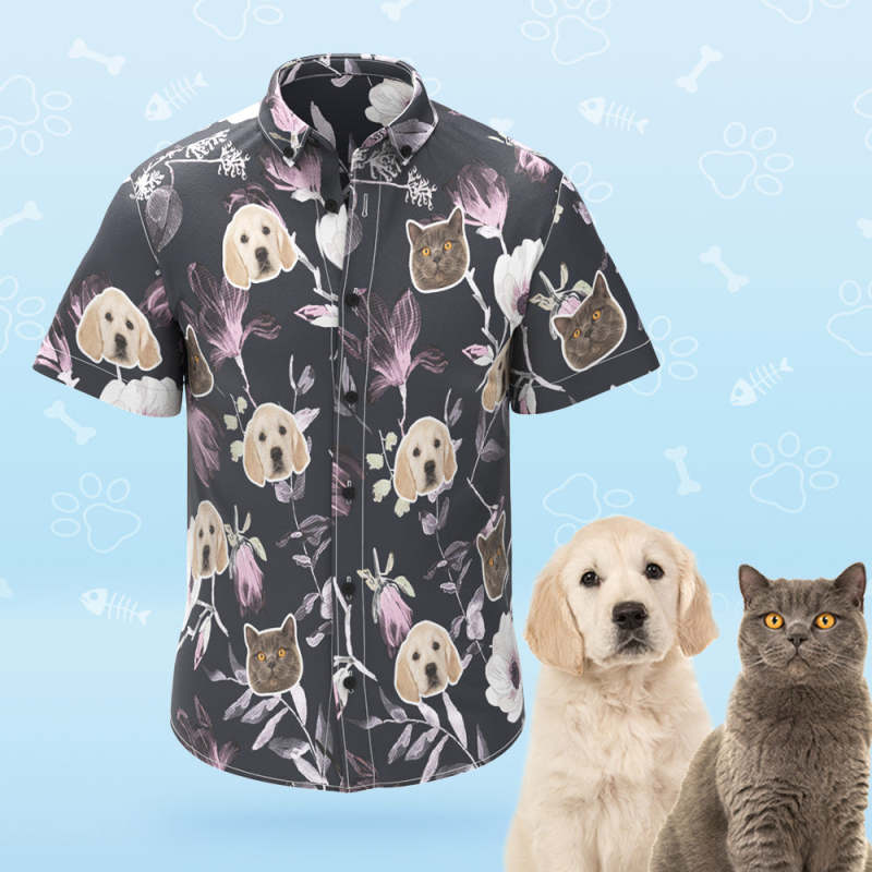 Chemise Hawaïenne Personnalisée Avec Visage De Chien Noir, Chemise De Plage Aloha Personnalisée, Cadeau Pour Amoureux Des Animaux De Compagnie
