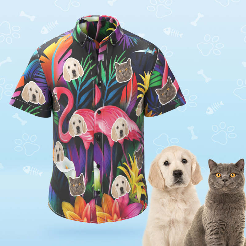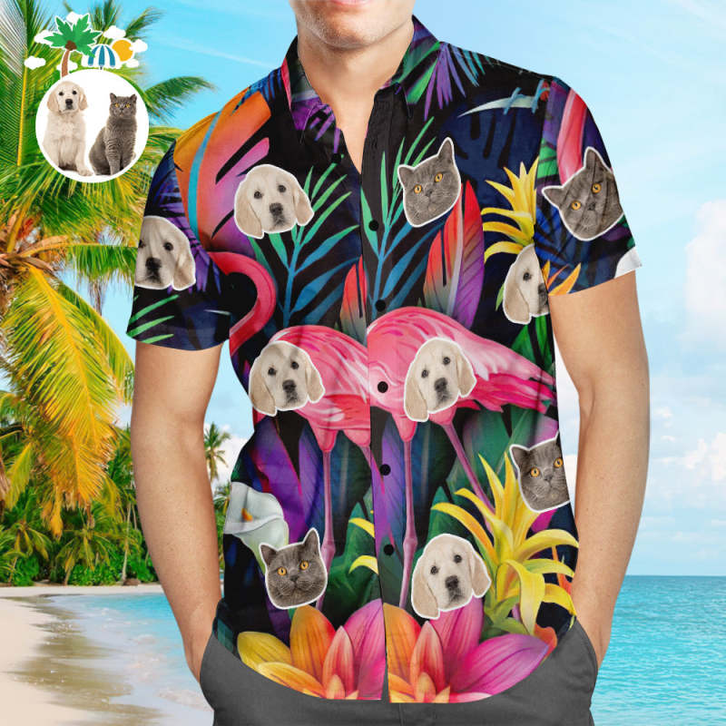 Chemise Hawaïenne Personnalisée Avec Visage De Chien, Flamant Coloré, Chemise De Plage Aloha Personnalisée, Cadeau Pour Amoureux Des Animaux De Compagnie