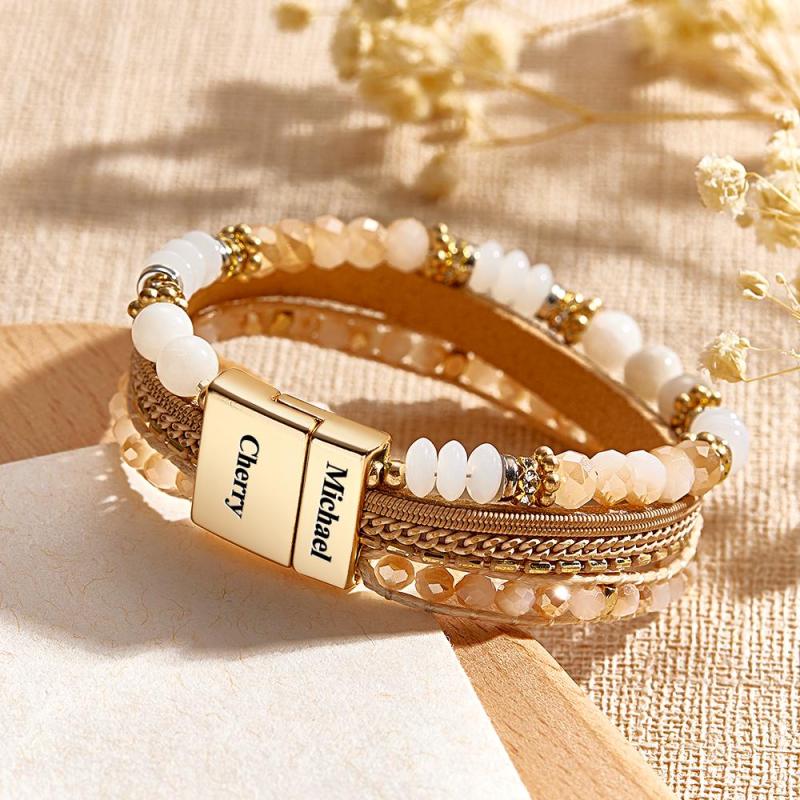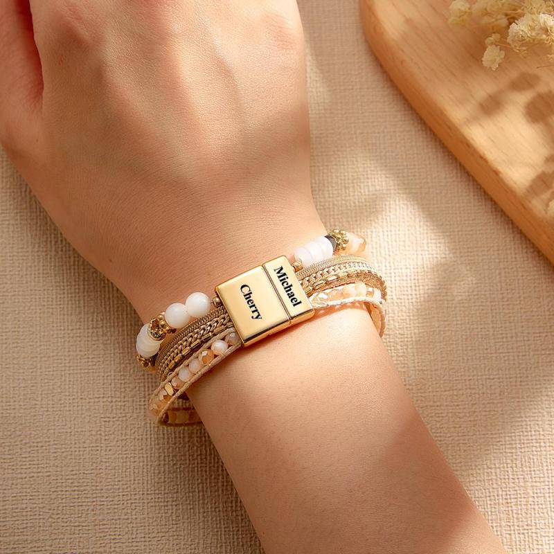 Bracelet Gravé Personnalisé Bohème Empilé Cadeaux De Tissage Romantique