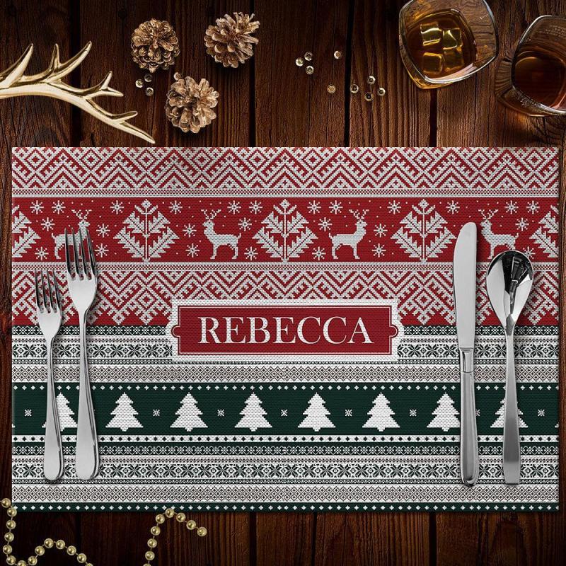 Napperons de Noël personnalisés.En utilisant un matériau en polyester, avec plusieurs modèles de fond, enrichissez vos choix et décorez votre vie. Graver ce que vous voulez dire sur le napperon est un beau paysage sur la table, et c'est le choix parfait pour décorer vos meubles et offrir des cadeaux à vos proches et amis.