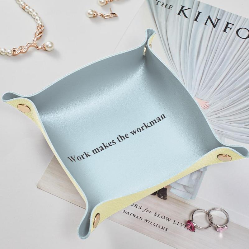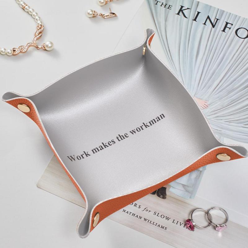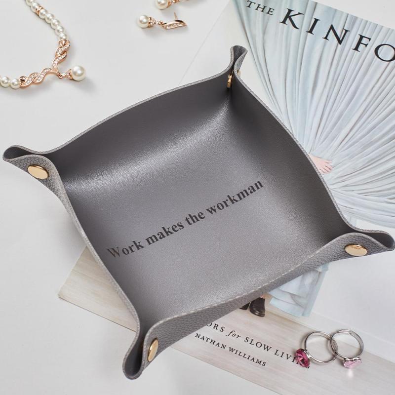 Aujourd'hui, le plateau à bijoux est l'un des best-sellers sur le marché de la maroquinerie. Ce magnifique plateau de rangement minimaliste est parfait pour les accessoires de bureau, votre table d'entrée ou le rangement de vos bijoux ! Fabriqué en cuir PU. Un excellent cadeau de pendaison de crémaillère ou de vacances.