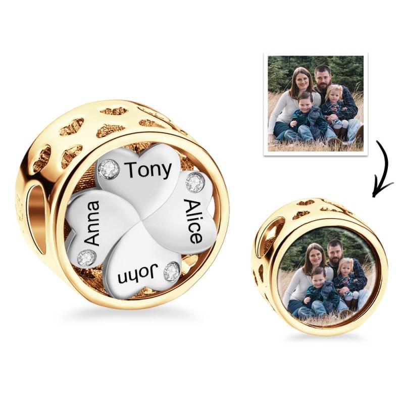 Breloque Photo Gravée Personnalisée, Trèfle Porte-bonheur, Cadeau D'amour Familial