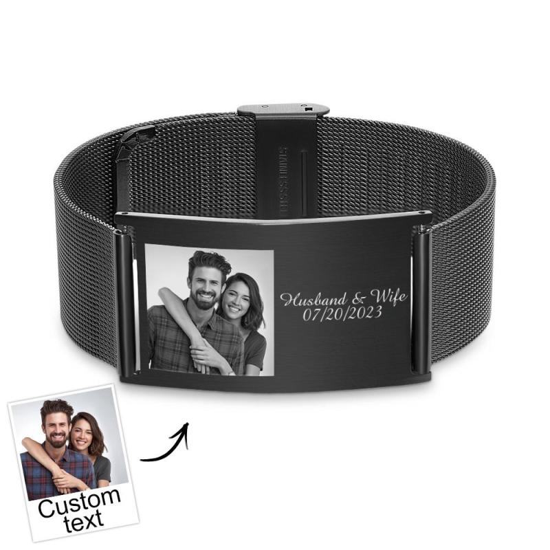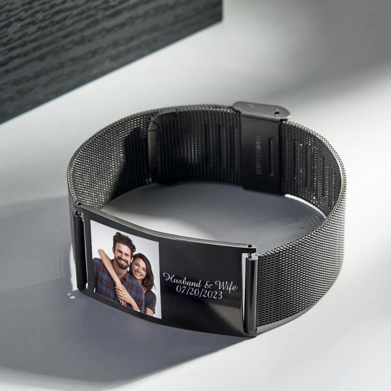 Bracelet Large Rétractable En Acier Inoxydable Avec Photo Et Nom Gravés Personnalisés, Image Personnalisée, Bijoux Cadeaux Pour Hommes