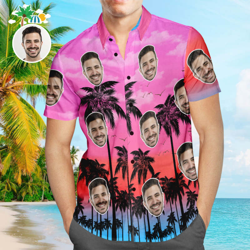 Chemise Hawaïenne Avec Visage Personnalisé, Chemise D'été Fantaisie Violette, Chemise De Plage Aloha Personnalisée Pour Hommes