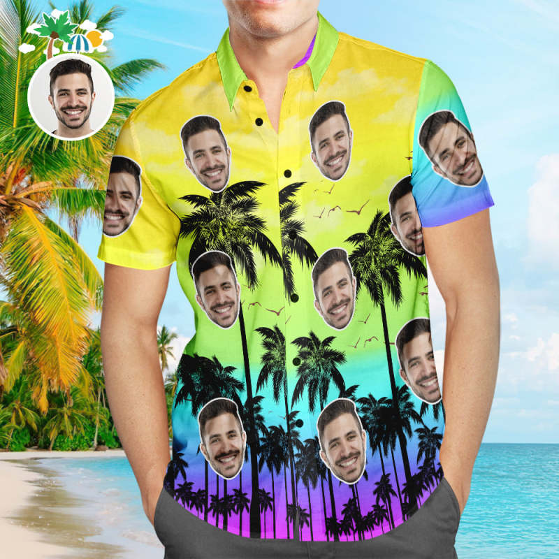 Chemise Hawaïenne À Visage Personnalisé, Chemise D'été Fantaisie Jaune, Chemise De Plage Aloha Personnalisée Pour Hommes
