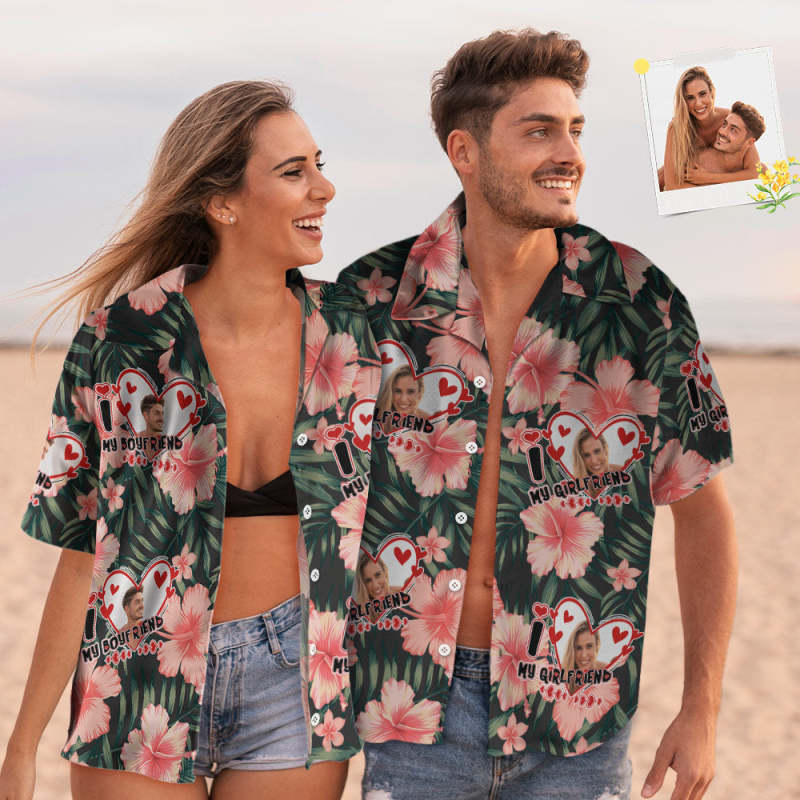 Chemise De Style Hawaïen Avec Visage Personnalisé, Tenue De Couple Pour L'amour