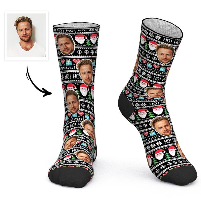 Chaussettes Visage Personnalisées Chaussettes Photo Personnalisées Cadeau De Noël Chaussettes De Père Noël - Noir