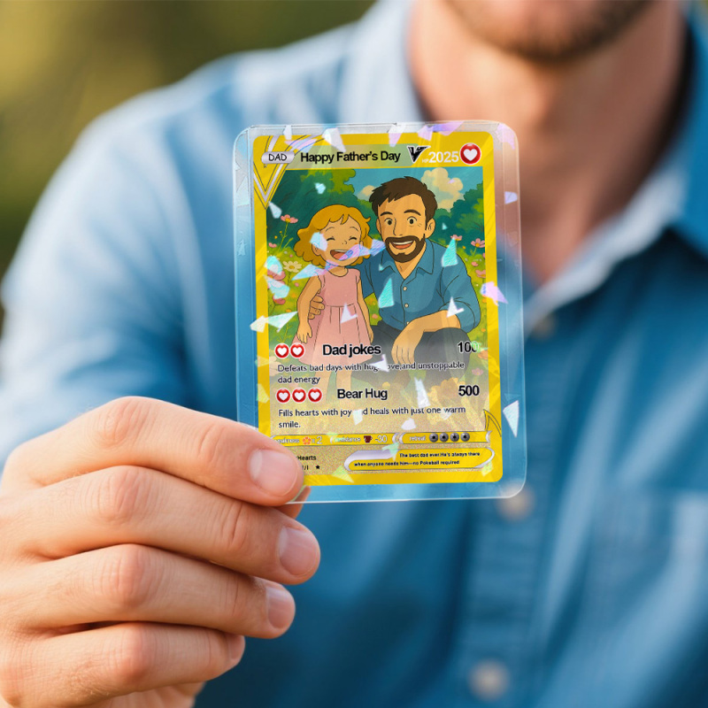 Célébrez la fête des pères avec cette carte Poke Card personnalisée unique en son genre. Nous prendrons votre photo et la transformerons en une carte artistique inspirée des animés. Taille :