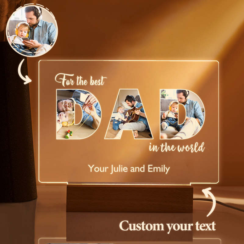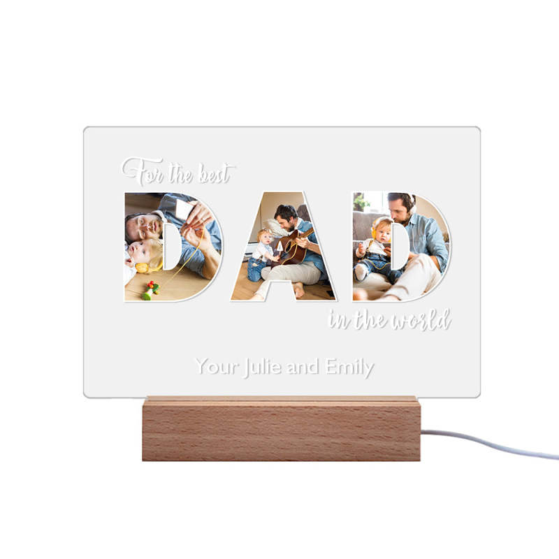 Cette veilleuse personnalisée est le cadeau parfait pour papa pour Noël, les réunions de famille, les anniversaires, ou toute autre occasion spéciale. Cela lui permettra certainement de se sentir aimé et apprécié, et vous rappellera d'aimer tous les jours, même lorsque vous n'êtes pas là. Il peut exposer ses cadeaux significatifs n'importe où dans le salon, la chambre ou le lieu de travail pour un décor époustouflant.