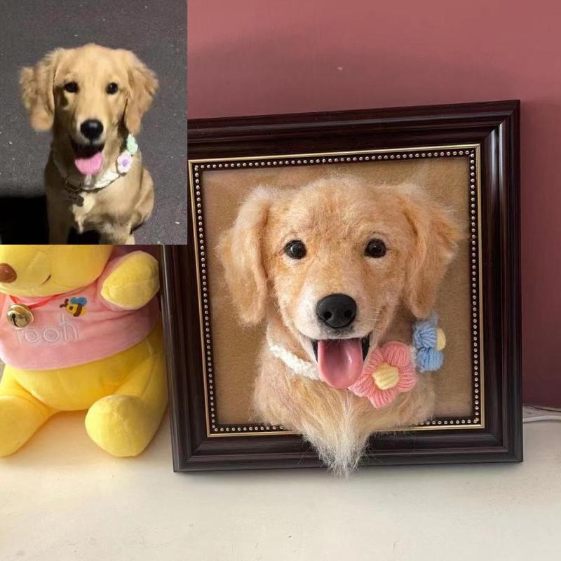 Animal De Compagnie En Feutre Personnalisé Dans Le Cadre, Chien De Chat Feutré À L'aiguille, Sculpture De Cadre De Chien Personnalisé Dans Le Cadre, Produit Fini