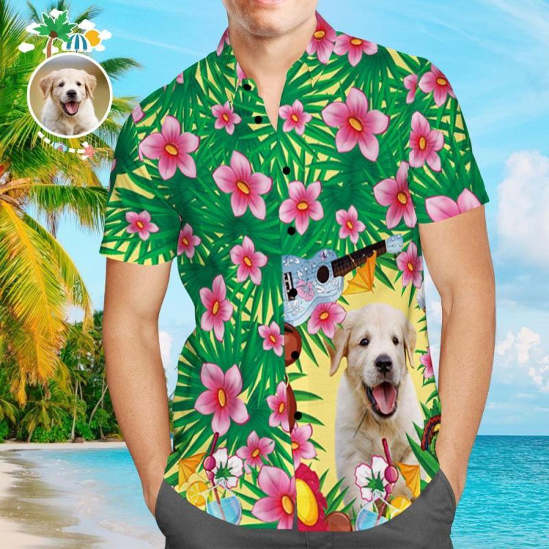 Chemises Hawaïennes Personnalisées, Chemise De Plage Aloha Avec Visage De Chien Cool Pour Hommes