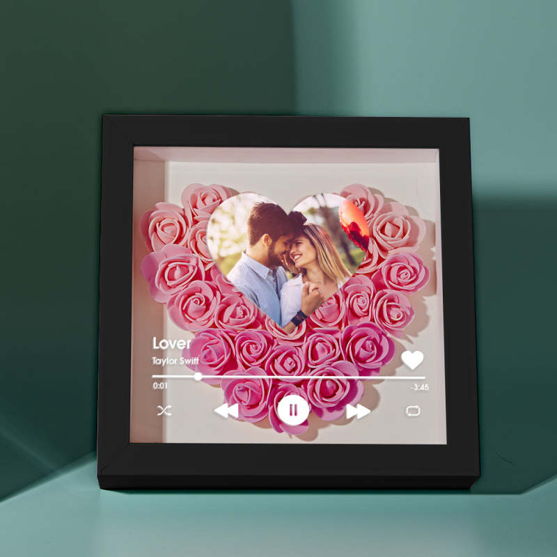 Boîte D'ombre De Fleur De Coeur Personnalisée Avec Des Cadeaux Romantiques De Photo Pour L'amant