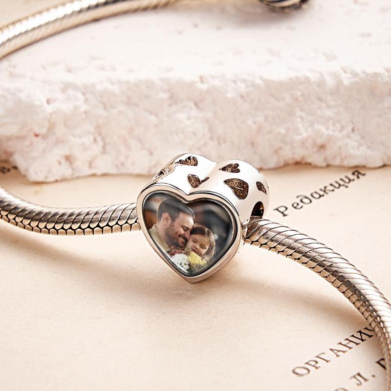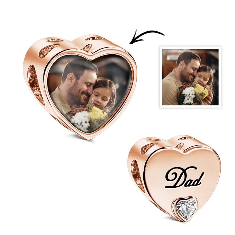 Breloque Photo Personnalisée En Forme De Cœur, Thème Papa, Cadeaux En Zircon Blanc Pour Femmes