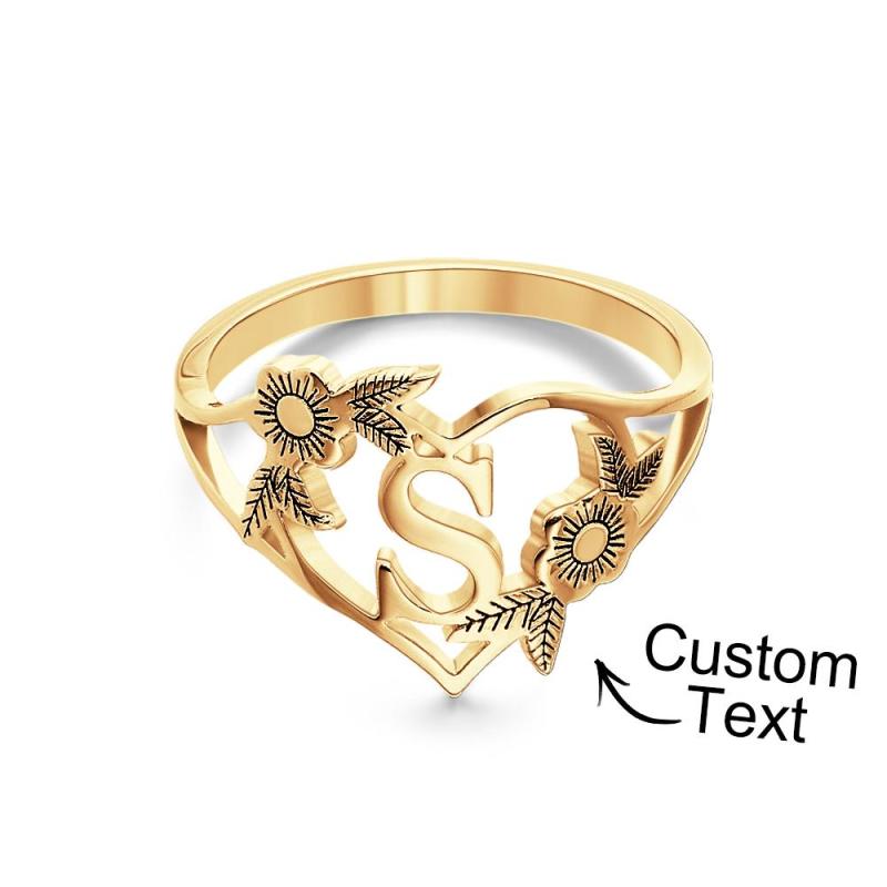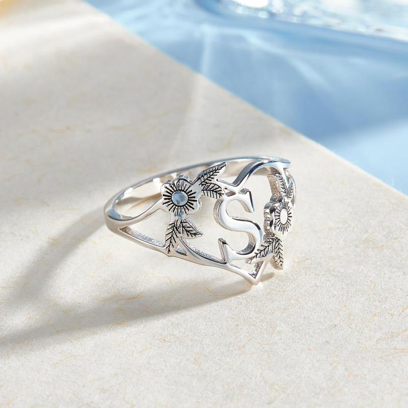 Initiales Personnalisées Lettre Coeur Et Fleurs Anneaux Personnalisé Dainty Letter Ring Cadeau Personnalisé Pour Elle