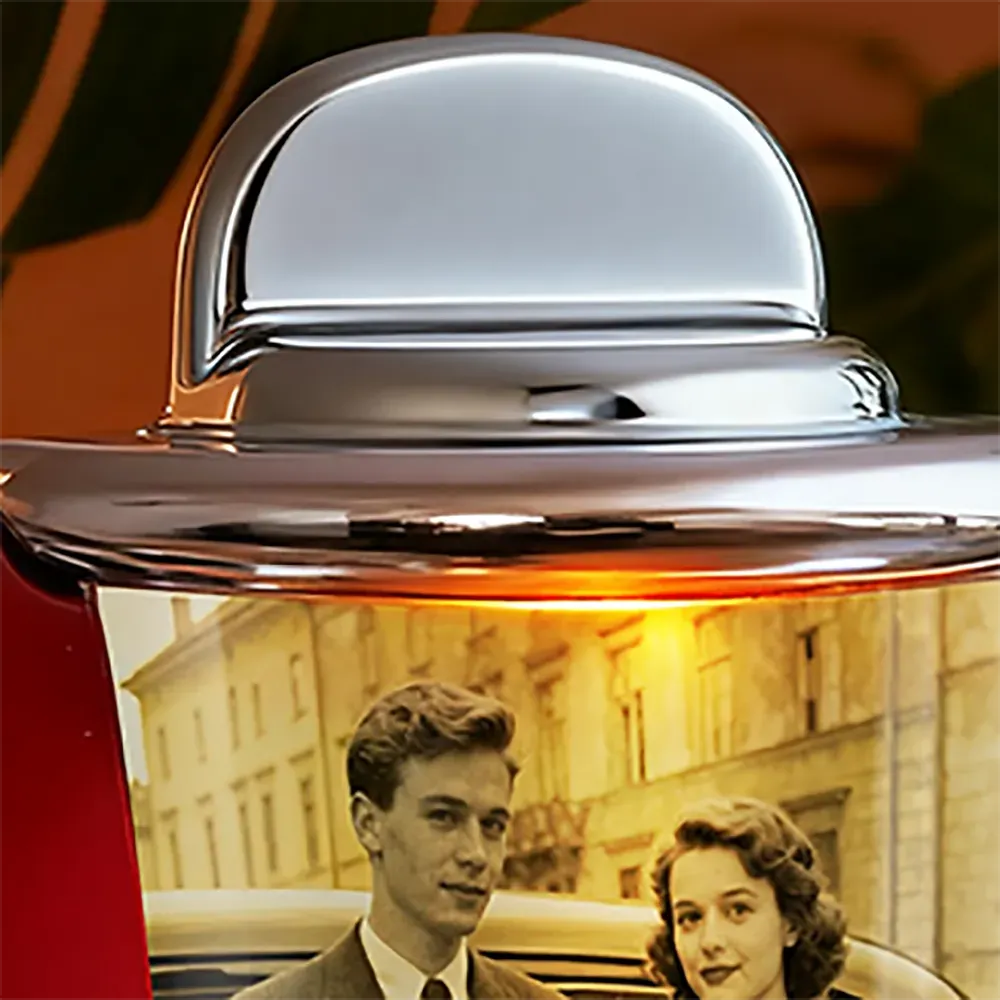 Revivez l'âge d'or de la musique avec cette enceinte jukebox rétro mini personnalisée. Son design inspiré des diners américains classiques allie charme vintage et technologie moderne. Écoutez vos morceaux préférés et profitez d'un objet élégant qui fait aussi office de décoration. Un cadeau unique idéal pour les mélomanes, les couples ou toute personne appréciant une touche de nostalgie dans son intérieur.