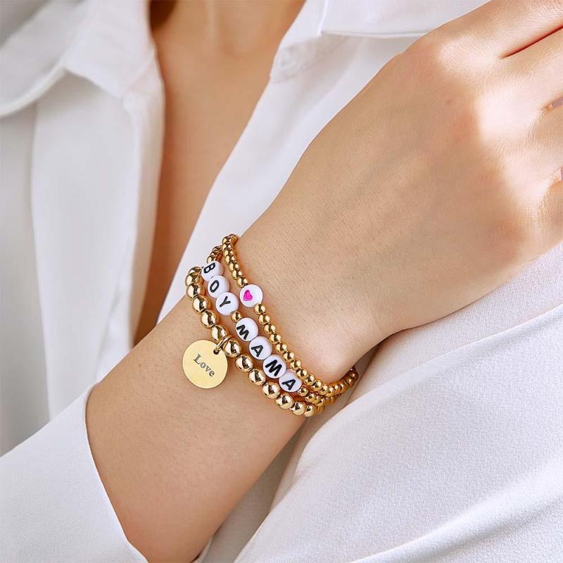 Bracelet De Perles Personnalisé Avec Nom, Pile De Cœur, Style Bohème, Cadeau Pour Elle