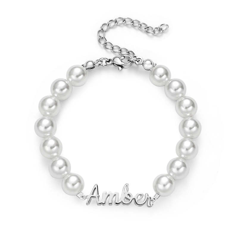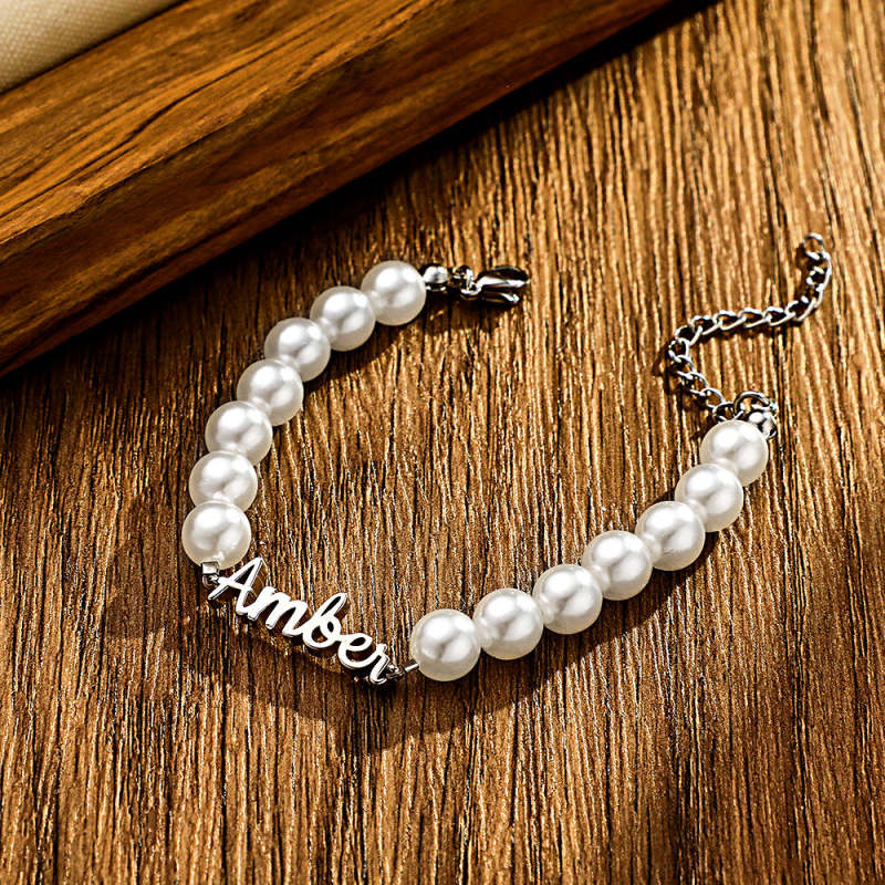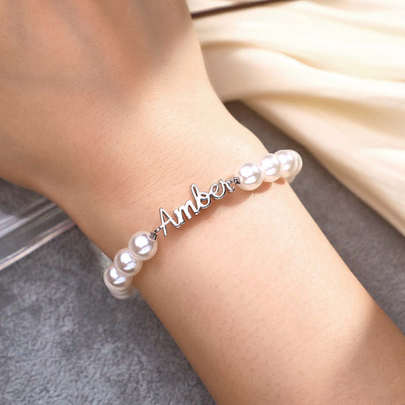 Bracelet Avec Nom Personnalisé, Chaîne De Perles, Cadeau Classique