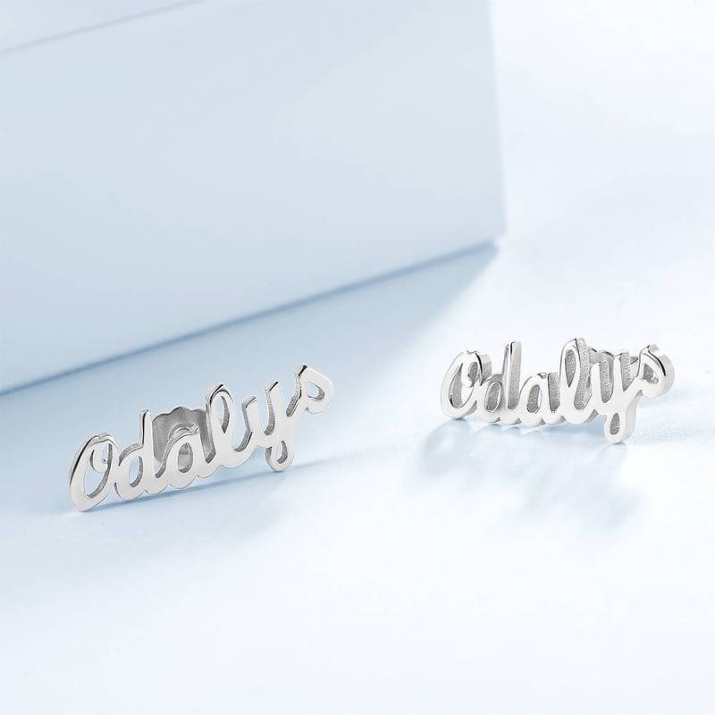 Boucle D'oreilles Prénom Personnalisé, Prénom Studs Plaqué En Platine