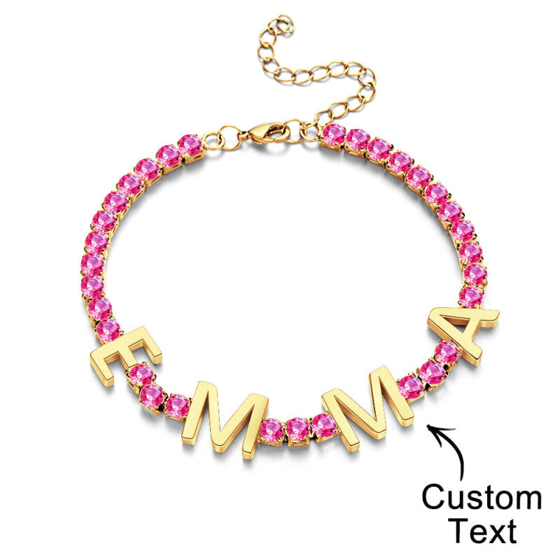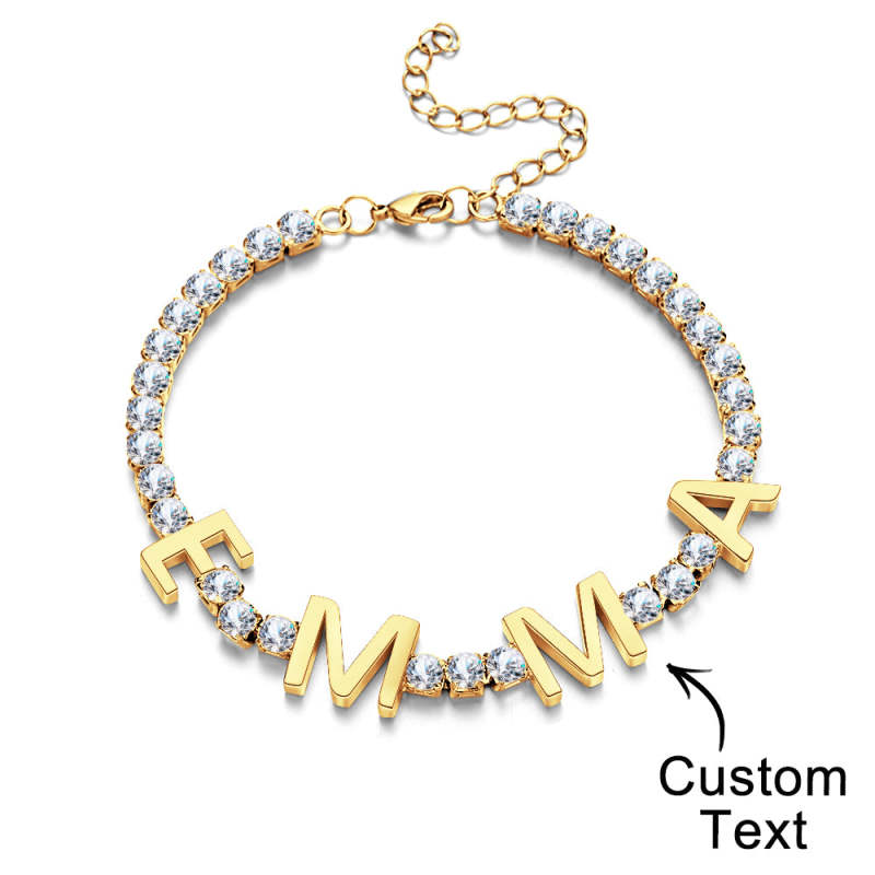 Fabriqué avec précision et attention aux détails, ce bracelet est doté d'une élégante chaîne tennis ornée de lettres de nom personnalisables, ajoutant une touche personnalisée qui le distingue des autres. Qu'il s'agisse de votre propre nom, des initiales d'un être cher ou d'un mot significatif, ce bracelet vous permet de vous exprimer de manière audacieuse et unique.