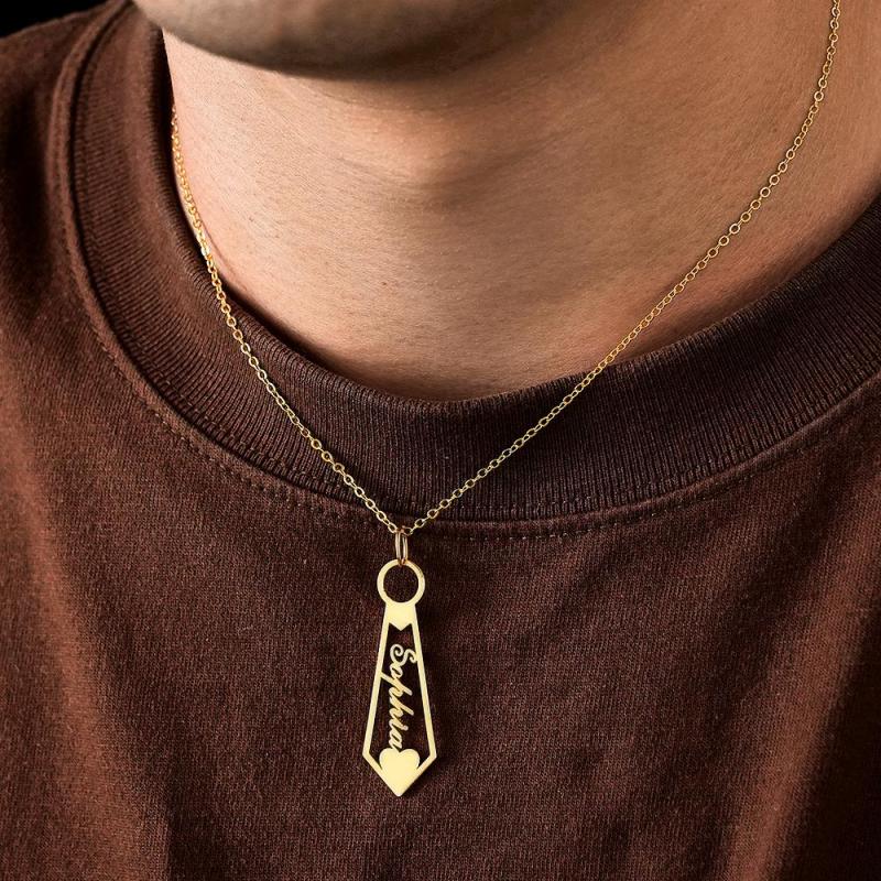 Collier Avec Nom Personnalisé, Pendentif En Forme De Cravate, Cadeaux Pour Papa