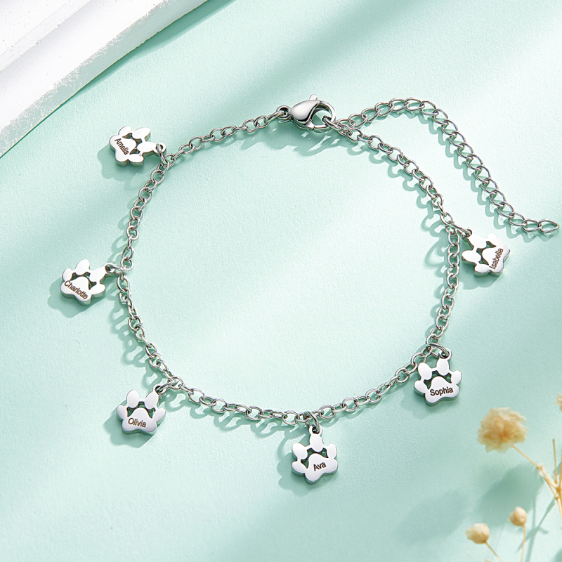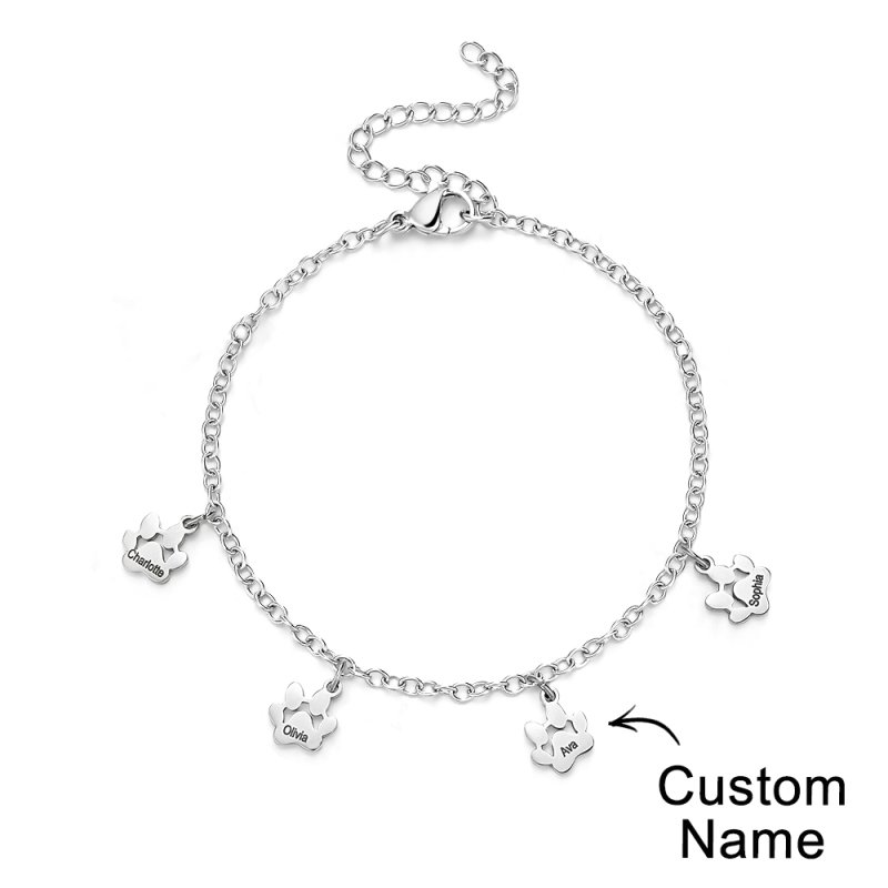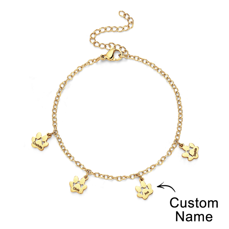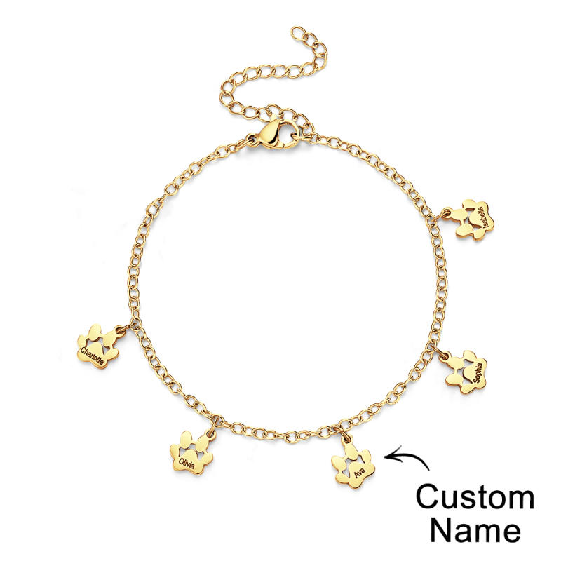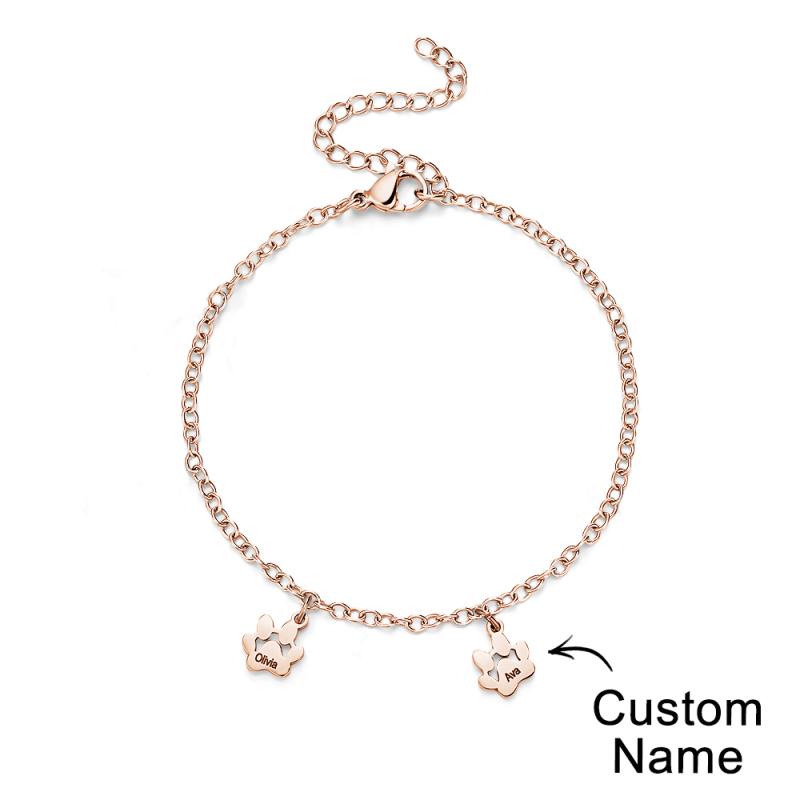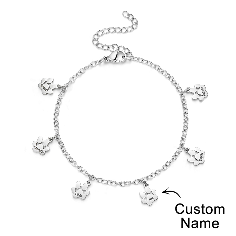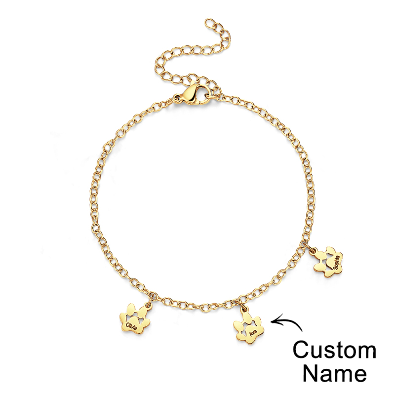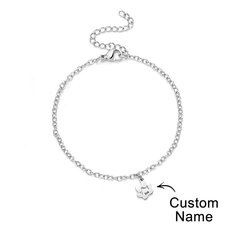 Bracelets personnalisés minimalistes avec nom imprimé patte, l'accessoire parfait pour tous les amoureux des animaux ! Ces bracelets délicats sont ornés d'adorables empreintes de pattes qui capturent l'essence de votre ami à quatre pattes. Chaque bracelet peut être personnalisé avec le nom de votre animal, ajoutant ainsi une touche personnelle à cette pièce déjà exquise. Que vous soyez un amoureux des chiens et des chats, nos bracelets minimalistes Paw sont conçus pour mettre en valeur votre amour pour les animaux de compagnie de manière minimaliste et élégante. Fabriqués à la main avec amour et attention aux détails, ces bracelets sont le cadeau idéal pour vous-même ou pour un autre passionné d'animaux de compagnie. Portez fièrement le nom de votre animal de compagnie et gardez-le près de votre cœur avec nos bracelets de patte personnalisés avec nom d'animal de compagnie. Achetez maintenant et profitez du lien qui vous unit à votre compagnon à quatre pattes !.