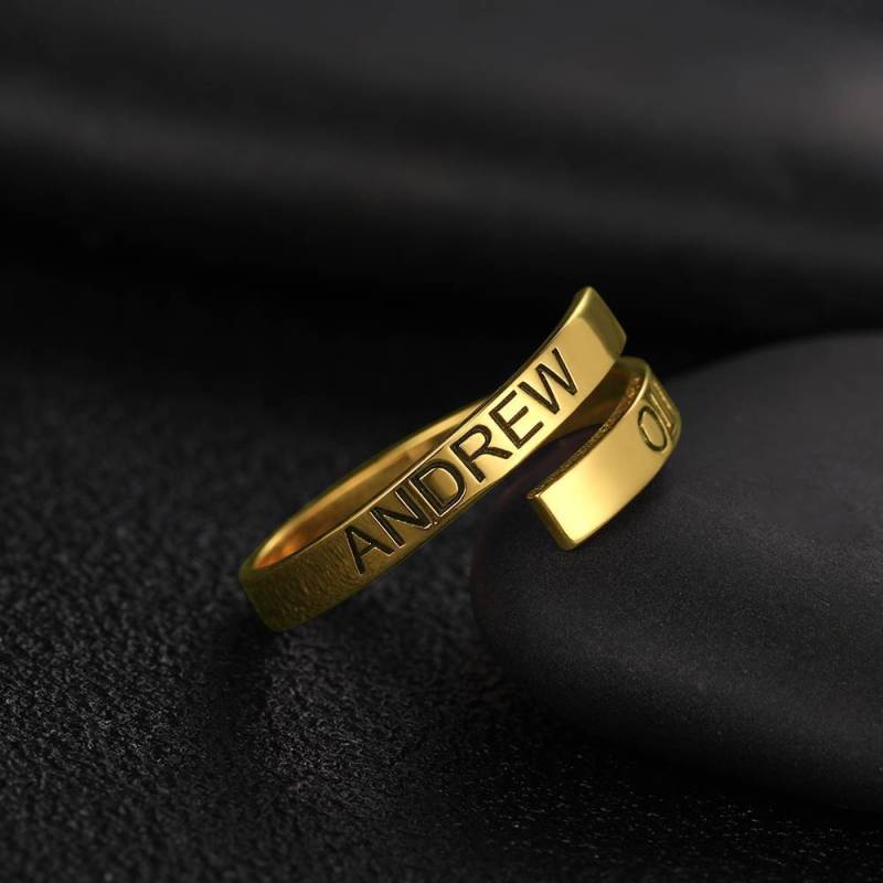 Bague Prénom Personnalisée, Gravée Deux Bagues Prénoms Plaqués En Or 14k- Doré