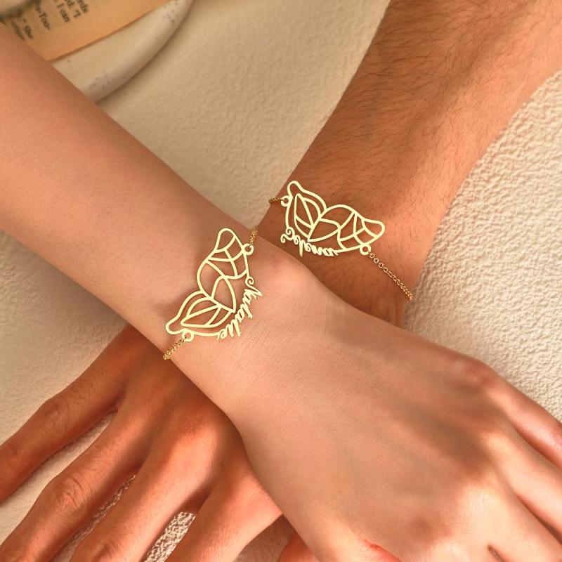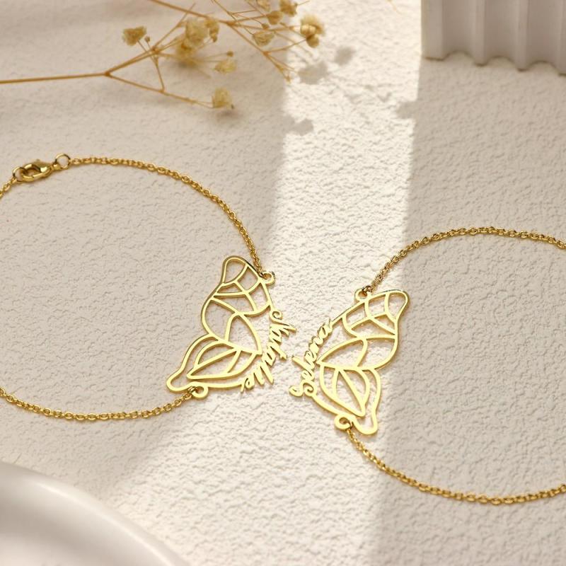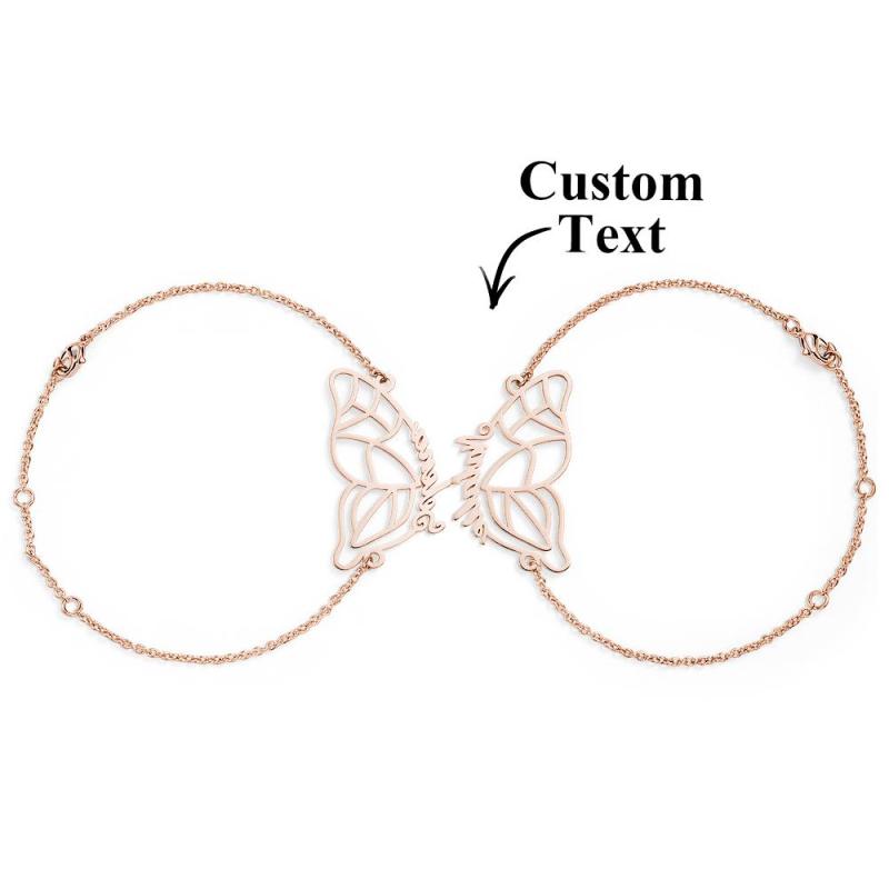 Nom Personnalisé Deux Bracelets Papillon Cadeau De Couple Romantique