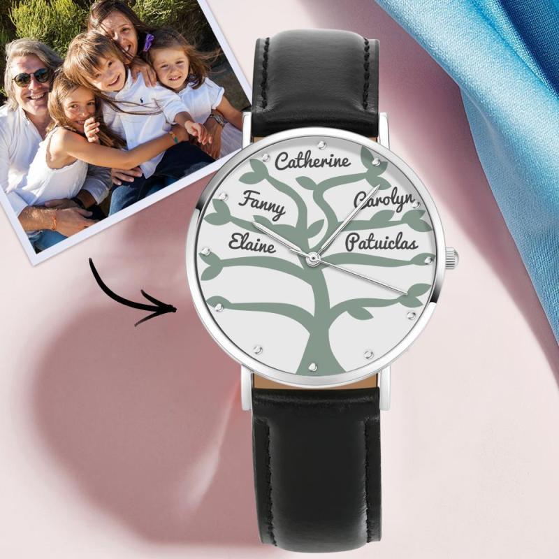 Nom Personnalisé Montre Bracelet En Cuir Noir 40 Mm Cadeaux Créatifs (1-9 Noms)