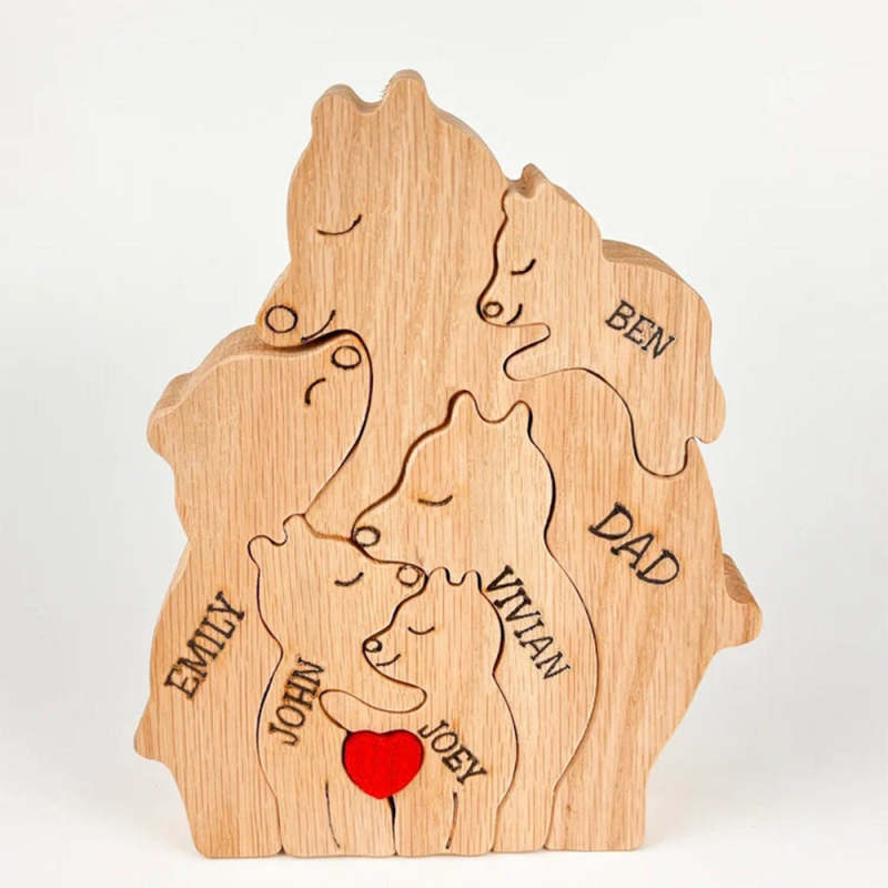 Ours En Bois Avec Noms Personnalisés, Bloc Familial, Puzzle, Cadeaux De Décoration Pour La Maison