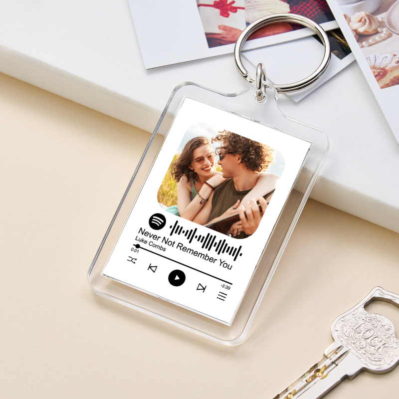 - Customizable: Select your song and photo to be embedded as a Spotify Code on the keychain.