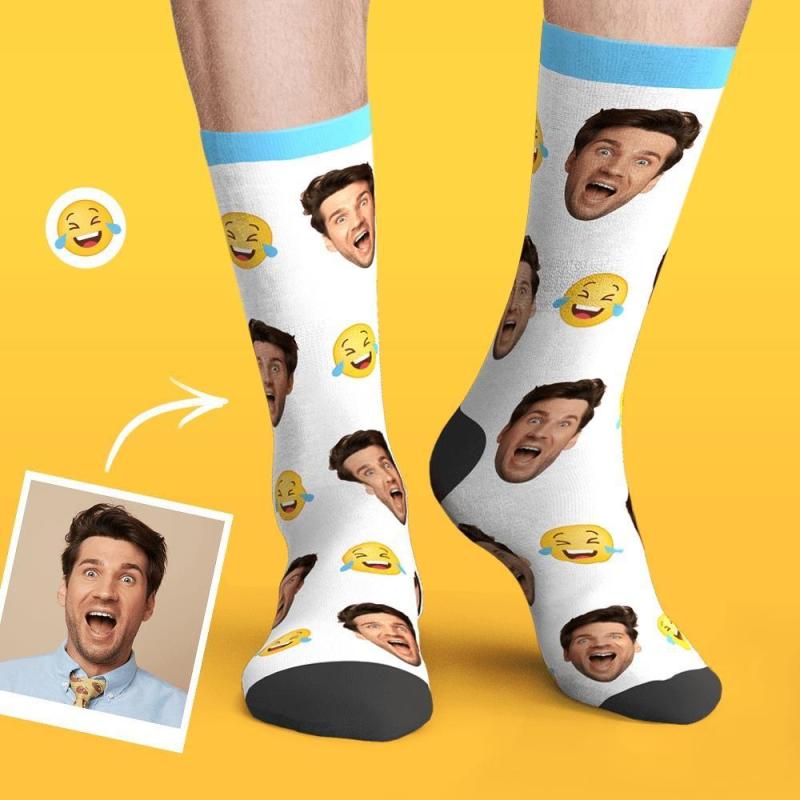 Personnalisé Personnalisé Photo émotic?nes Dr?les Visage Chaussettes-sourire à Travers Les Larmes