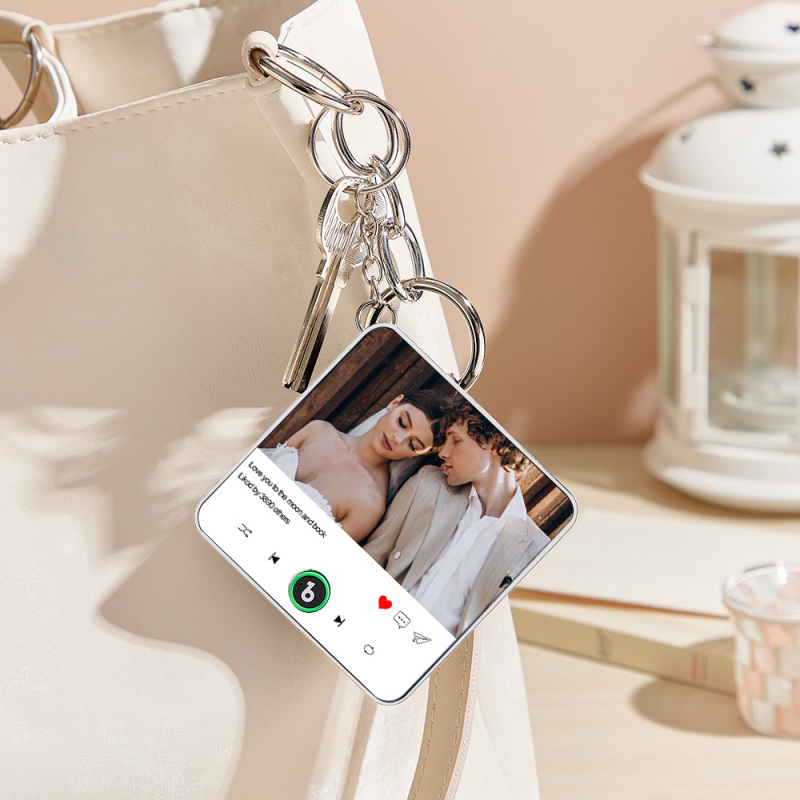 Célébrez vos souvenirs avec ce porte-clés musical photo personnalisé : une mini boîte à musique à emporter partout. Fabriqué en acrylique de qualité supérieure, cet accessoire durable et élégant offre un son cristallin et une fonction de lecture par simple pression d'un bouton, vous permettant d'écouter de la musique instantanément sans utiliser votre téléphone.