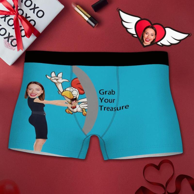 Culotte Boxer Photo Personnalisé, Boxeur Drôle De Visage Grab Your Treasure - Homme