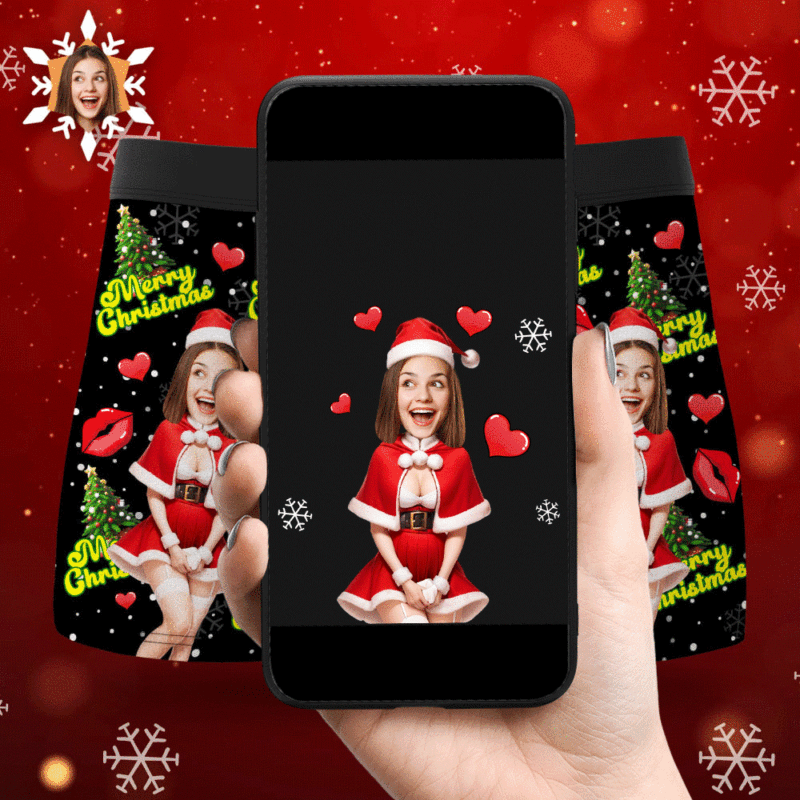 Photo Personnalisée Boxer Santa Woman Face Sous-vêtements Couple Cadeaux Cadeau De Noël Ar View