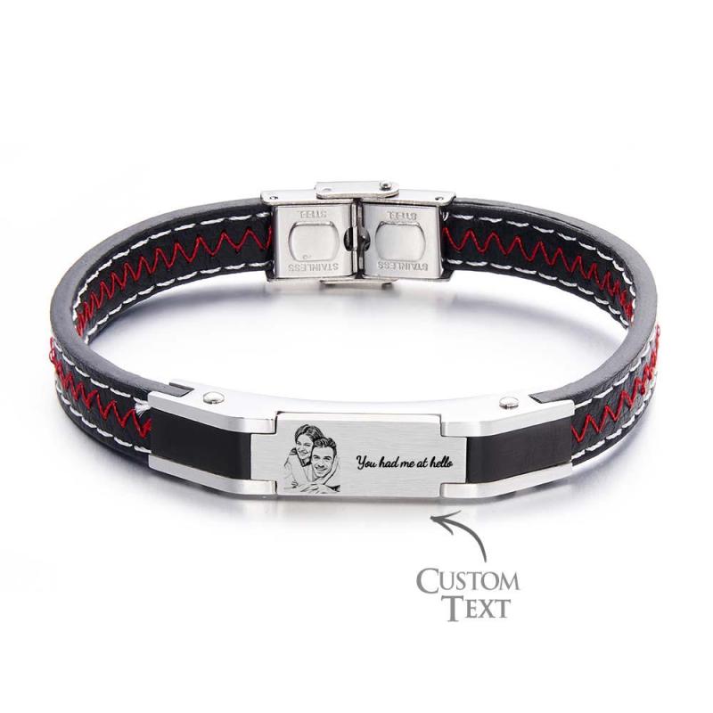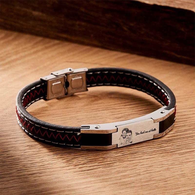 Bracelet Personnalisé Avec Photo Gravée, Cadeau En Cuir À La Mode Pour Hommes