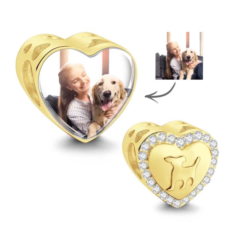 Breloque En Forme De Cœur Avec Photo Personnalisée, Décor En Zircon, Design De Chien, Cadeaux Pour Les Amoureux Des Animaux De Compagnie