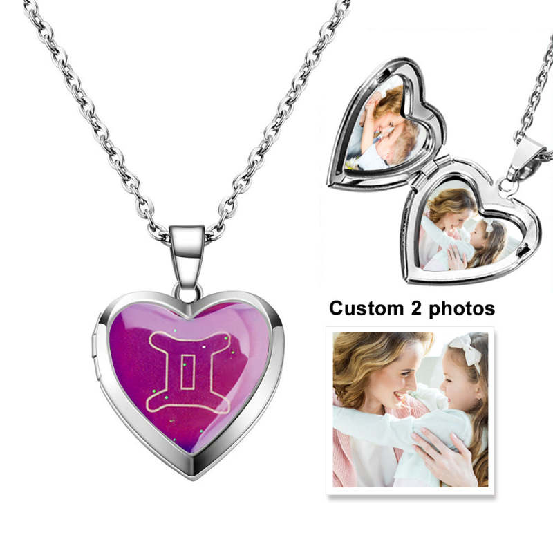 Collier Médaillon Coeur Photo Personnalisé Douze Constellations Température Détection Changement De Couleur Pendentif Collier