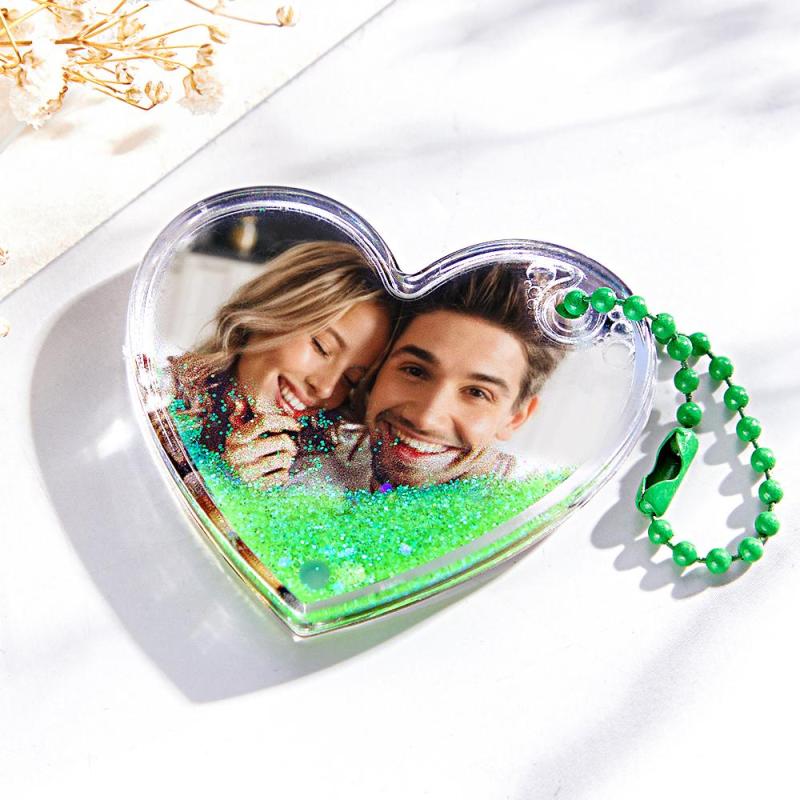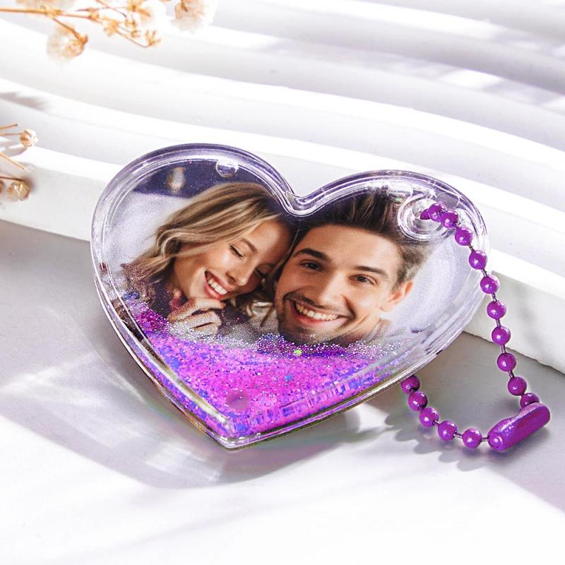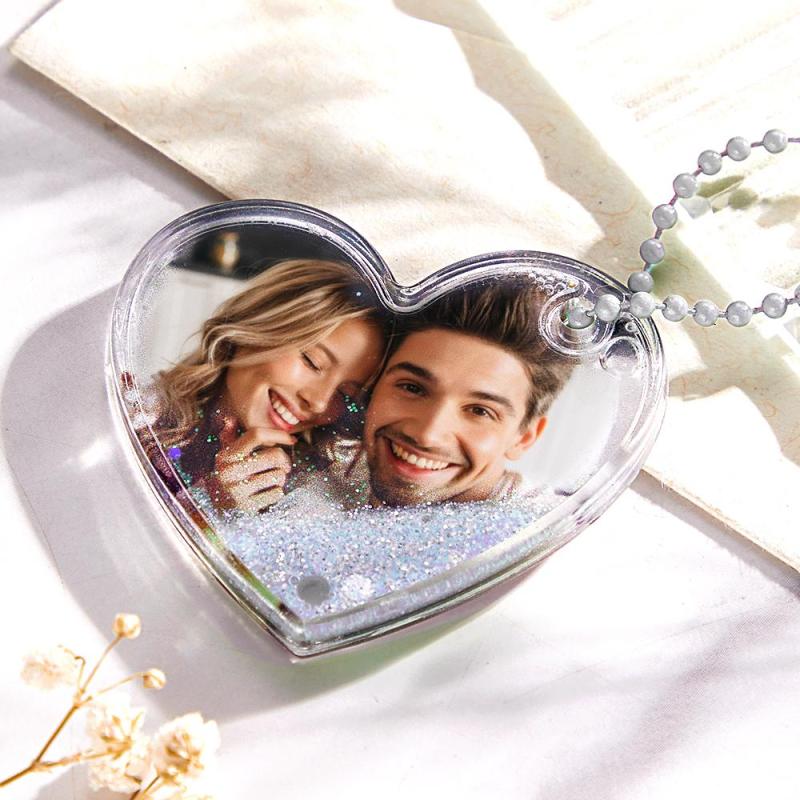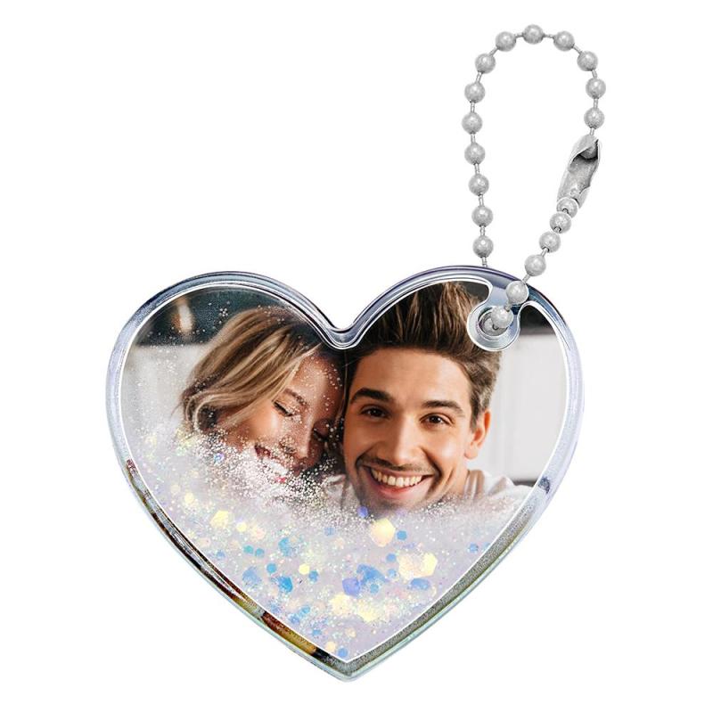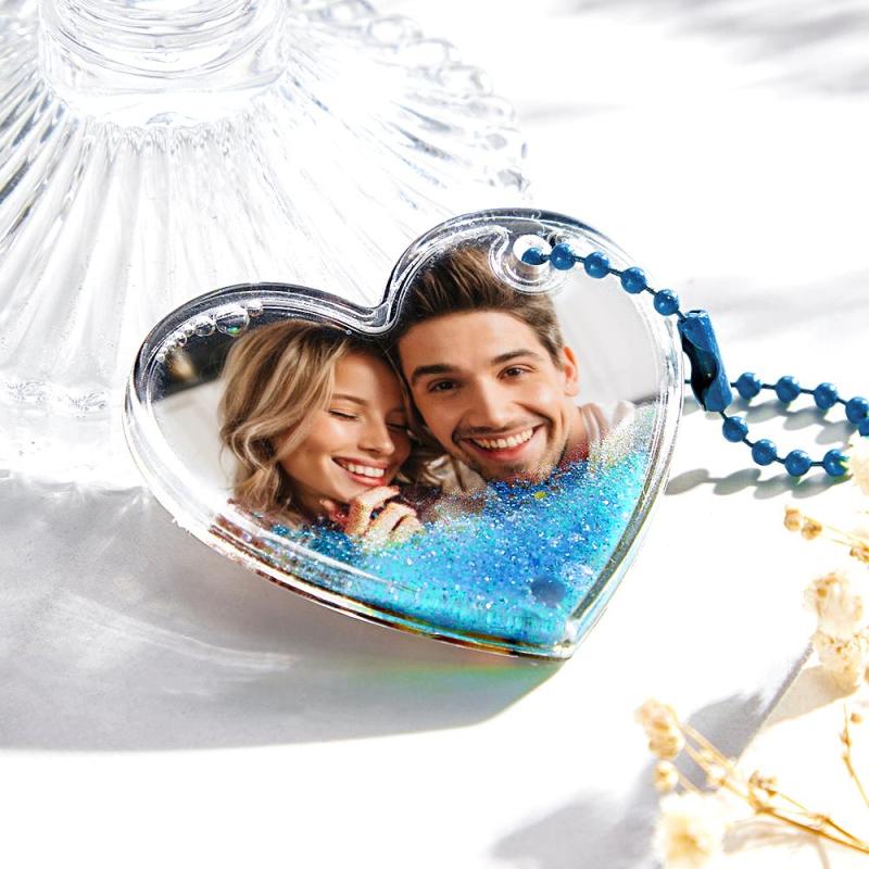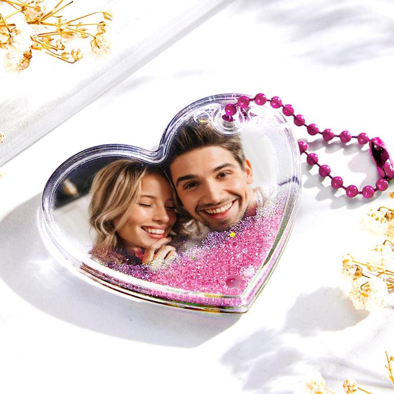 Porte-clés Photo Personnalisé En Forme De Cœur Avec Cadeaux De Sables Mouvants Pour Elle