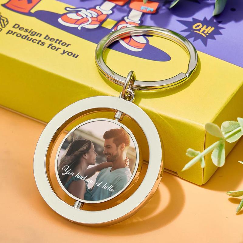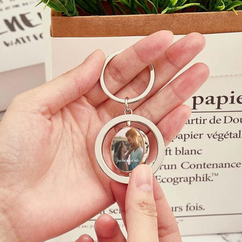 Vous cherchez le cadeau parfait pour la Saint-Valentin ? Personnalisez notre porte-clés rond en métal rotatif, conçu pour célébrer l'amour. Choisissez une photo ou un doux moment et associez-le à un texte personnalisé pour créer un souvenir unique.