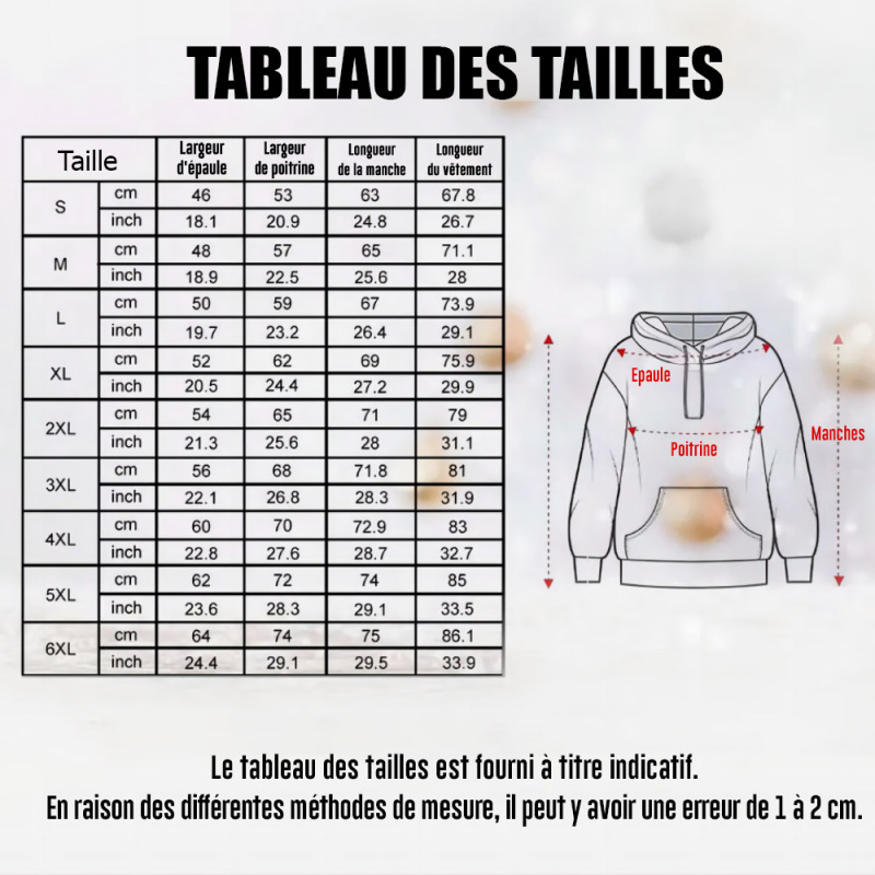 Sweat à capuche personnalisé avec votre propre photo dessus. Matériaux de haute qualité sélectionnés pour s'assurer qu'il est confortable et sain. Des techniques avancées sont utilisées pour garantir des photos claires et détaillées sur les sweats à capuche. Remarque : afin de garantir l'effet d'impression, il y aura des traces de liquide de traitement incolore sur les vêtements pendant le processus d'impression. Vous pouvez le laver à l'eau claire et cela n'aura aucun effet. Design détaillé : capuche confortable, poche kangourou fendue, le cordon de serrage peut être facilement ajusté. Il n'est pas facile de rétrécir, de boulocher et de se déformer, et il est confortable à porter.