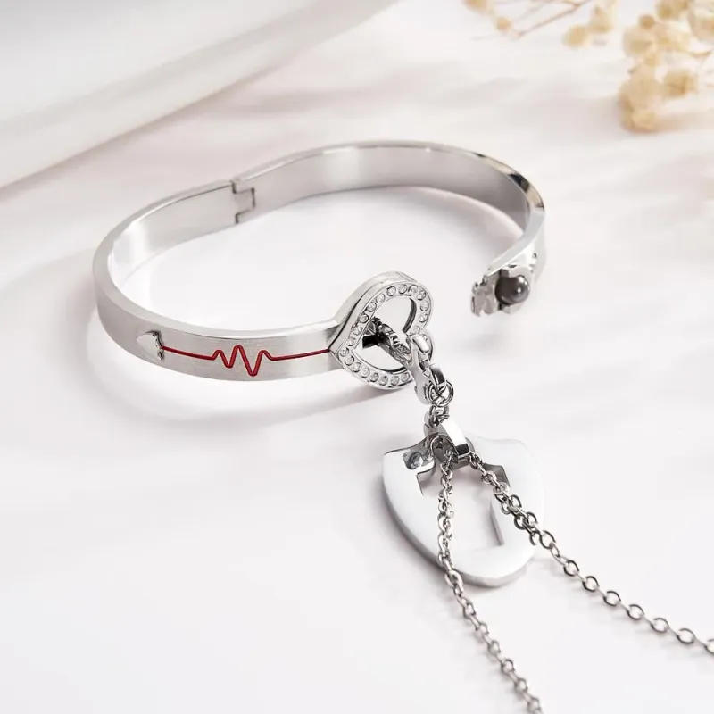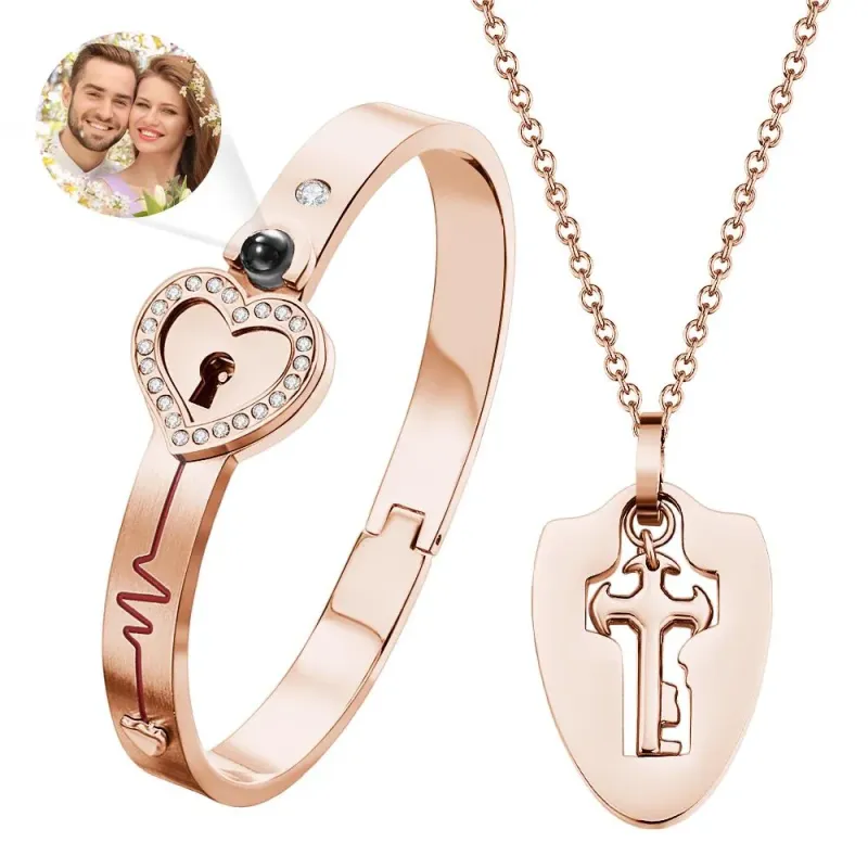 Bracelets Et Collier De Couple À Projection Personnalisés, Avec Véritable Ours En Rose, Boîte-cadeau En Forme De Rose, Boîte-cadeau À Bijoux