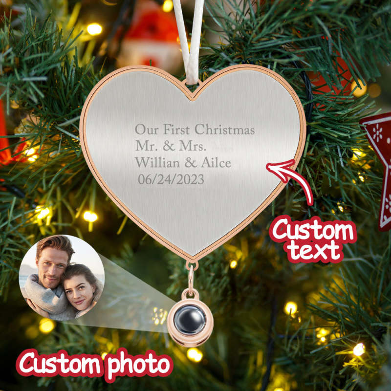 Ornement De Projection Personnalisé Cadeaux D’ornement De Noël En Forme De Cœur Personnalisés Pour Elle