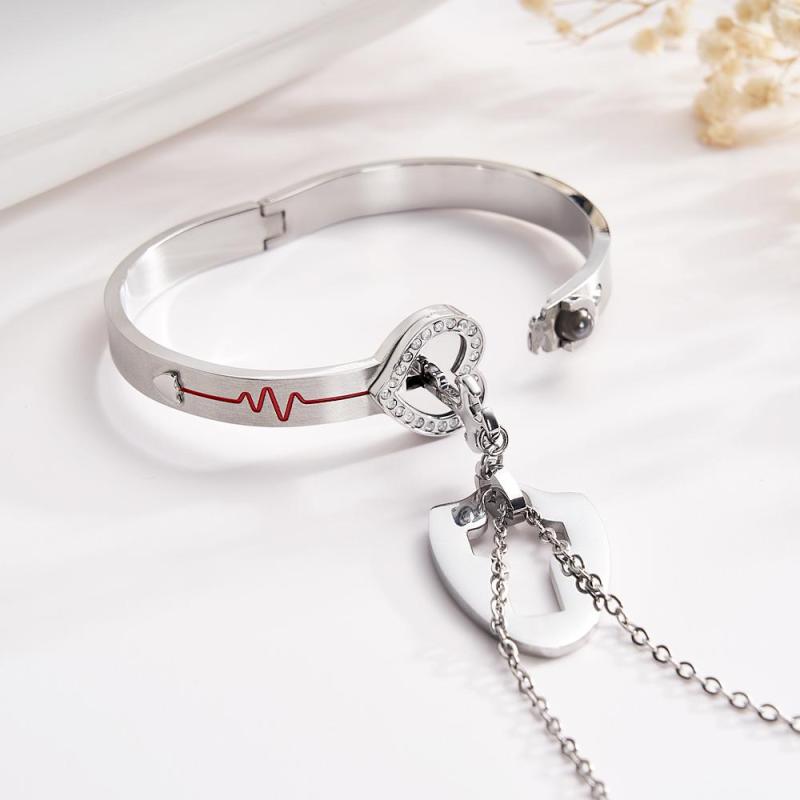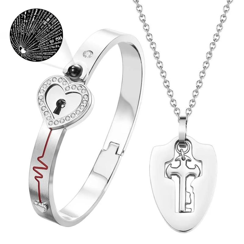 Bracelets Et Collier De Couple À Projection Personnalisée Collier Pendentif Clé Bouclier Et Bracelet De Verrouillage Vous Détenez La Clé De Mon Cœur Cadeau De La Saint-Valentin