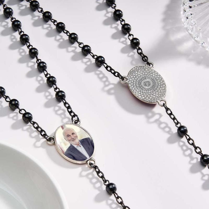 Collier De Perles De Chapelet Personnalisé, Collier De Croix De Calcul Biliaire Noir Personnalisé Avec Photo
