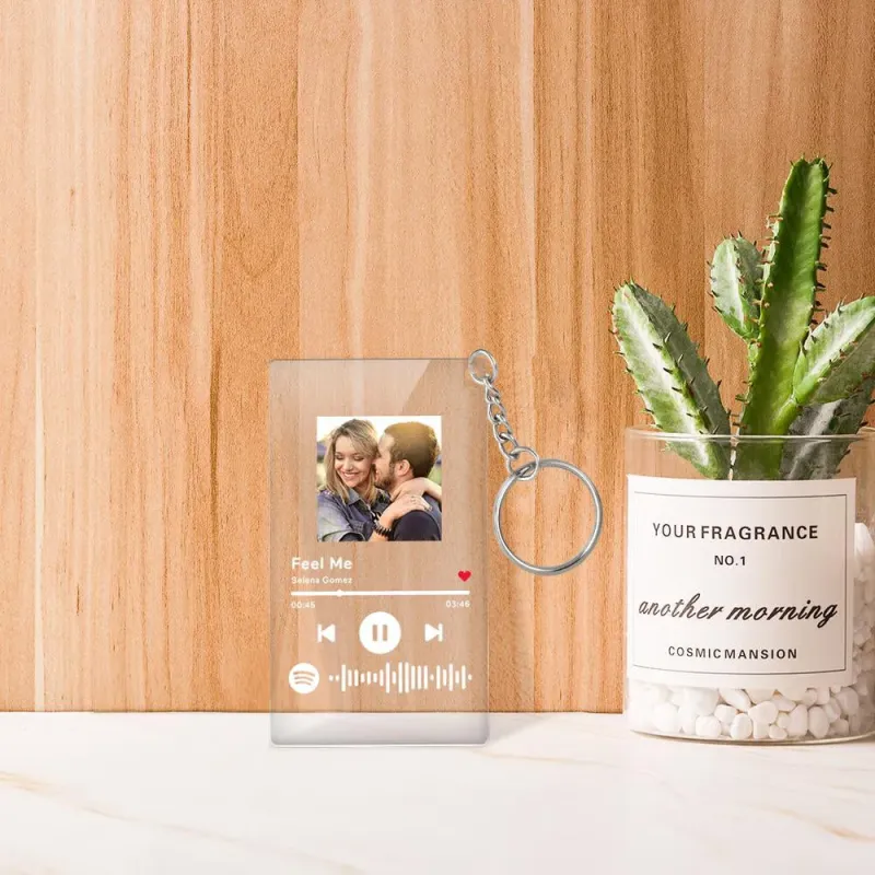 Ce porte-clés acrylique unique est le meilleur cadeau parfait pour lui / elle à No?l. Personnalisez le trousseau de code Spotify, choisissez le titre de la chanson, le nom de l'artiste et les photos préférées de votre choix, tout peut être imprimé sur la plaque acrylique et vous pouvez générer un code Spotify unique. Veuillez noter que la plaque acrylique elle-même n'émet pas de musique. Vous devez scanner le code sur l'application Spotify, après avoir scanné le code sur Spotify, votre chanson commencera à jouer immédiatement. A No?l, je crois que c'est le cadeau le plus romantique, jouez la plus belle musique pour votre amour.