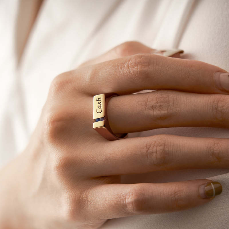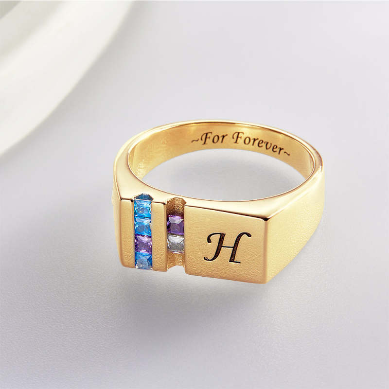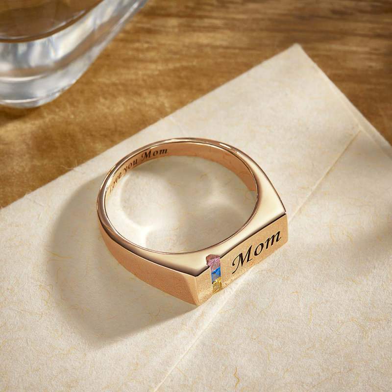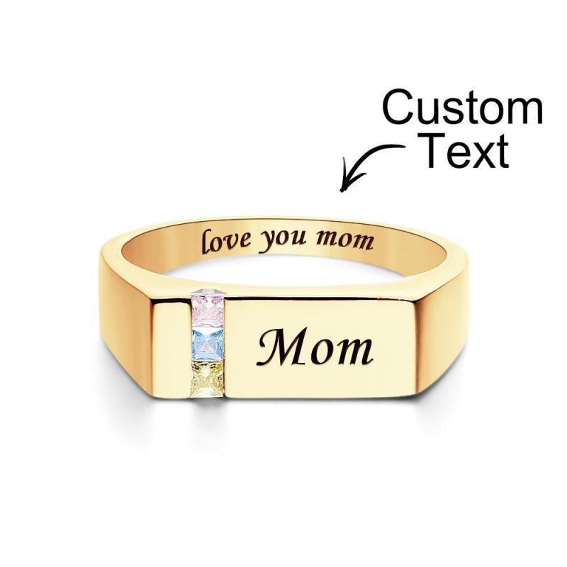 Bague Avec Pierre De Naissance Avec Texte Personnalisé, Plaquée Or 18 Carats, Cadeau Personnalisé Pour Elle