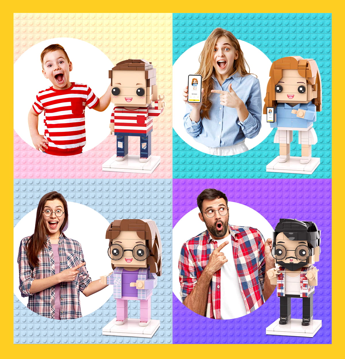 Imprimé à l'aide de la toute dernière impression numérique UV technologie pour une couleur éclatante et durable. Imprimez vos précieux souvenirs, affichez-les sur un bloc d'affichage autoportant, puis démontez et réassemblez pour une interaction amusante avec l'impression personnalisée.
