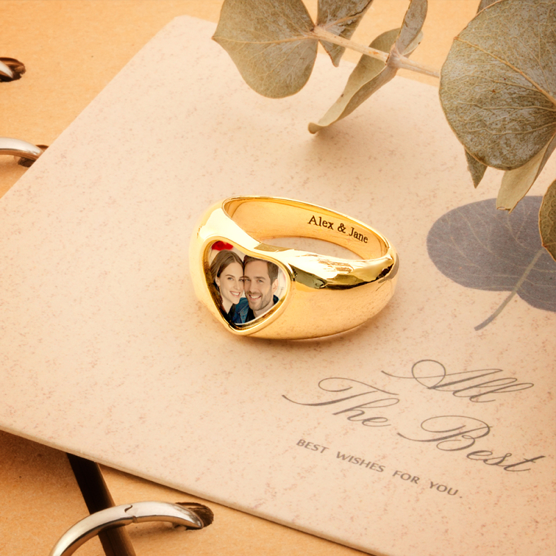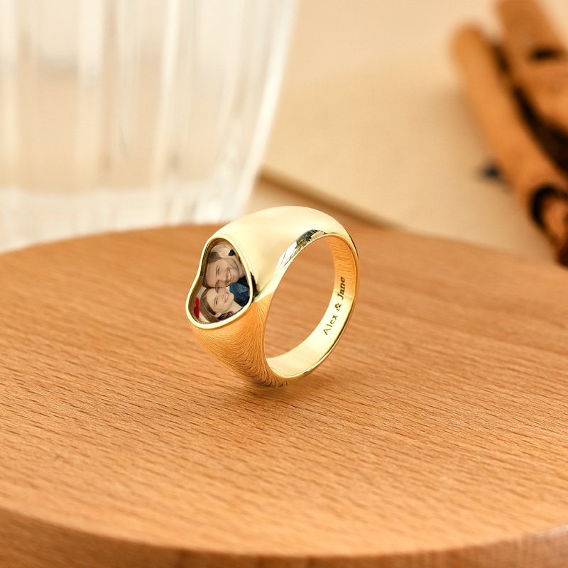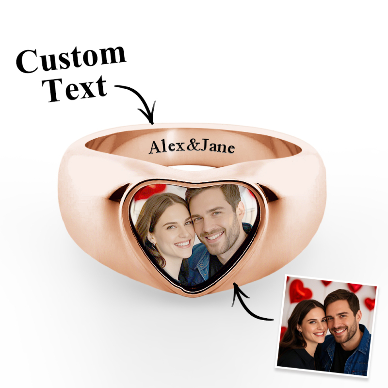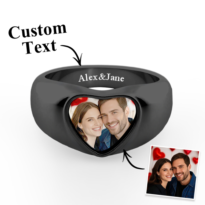 Anneaux photo épais personnalisables : cliquez sur « Personnaliser maintenant », téléchargez une image lisible préparée et continuez à cliquer sur « Gravure de texte », choisissez la police, puis saisissez les mots. Vous obtiendrez une chevalière incomparable. Avec l'image de vos proches, réunion de famille, réunion d'amis ou événement important sur le visage de la bague, gardez toujours un souvenir d'amour à vos côtés.