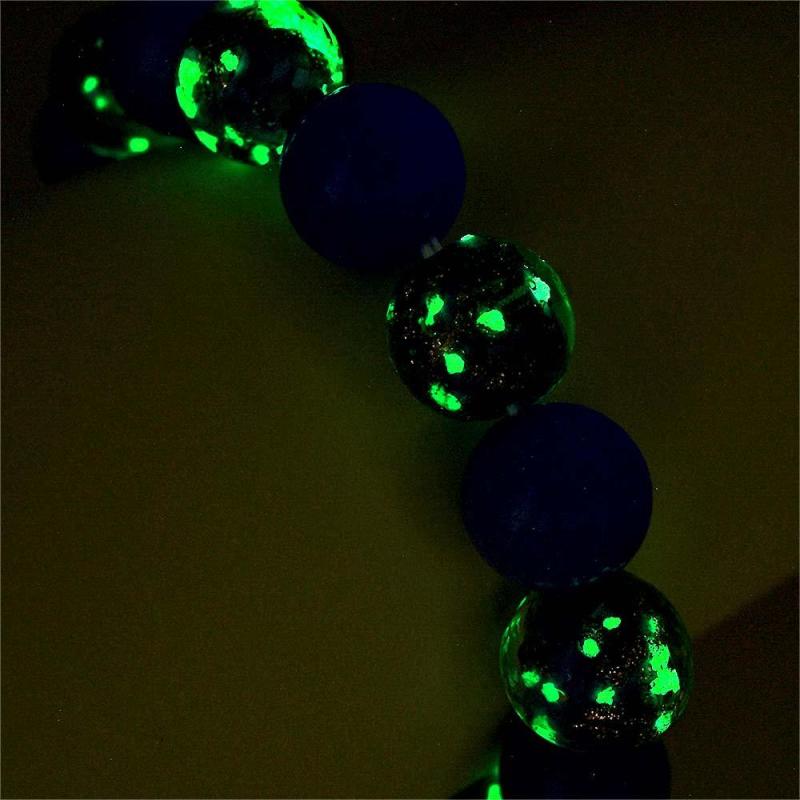 Bracelet De Perles Extensibles En Verre Luciole Bleu Foncé Qui Brille Dans Le Noir Bracelet Lumineux